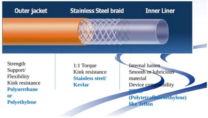 Pürüzsüzlük ve kanal düzgünlüğü: PTFE, PA12 ve PEBAX gibi astar malzemeleri pürüzsüz bir iç yüzey sağlayabilir, sürtünmeyi ve hasarı azaltabilir ve düzgün kanallar sağlayabilir.